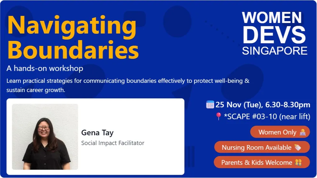 Led by Gena Tay, a passionate community builder with deep experience in social impact and diversity conversations, this interactive session will help you: • Understand the importance of healthy boundaries at work • Communicate effectively • Foster a healthier team and workplace culture